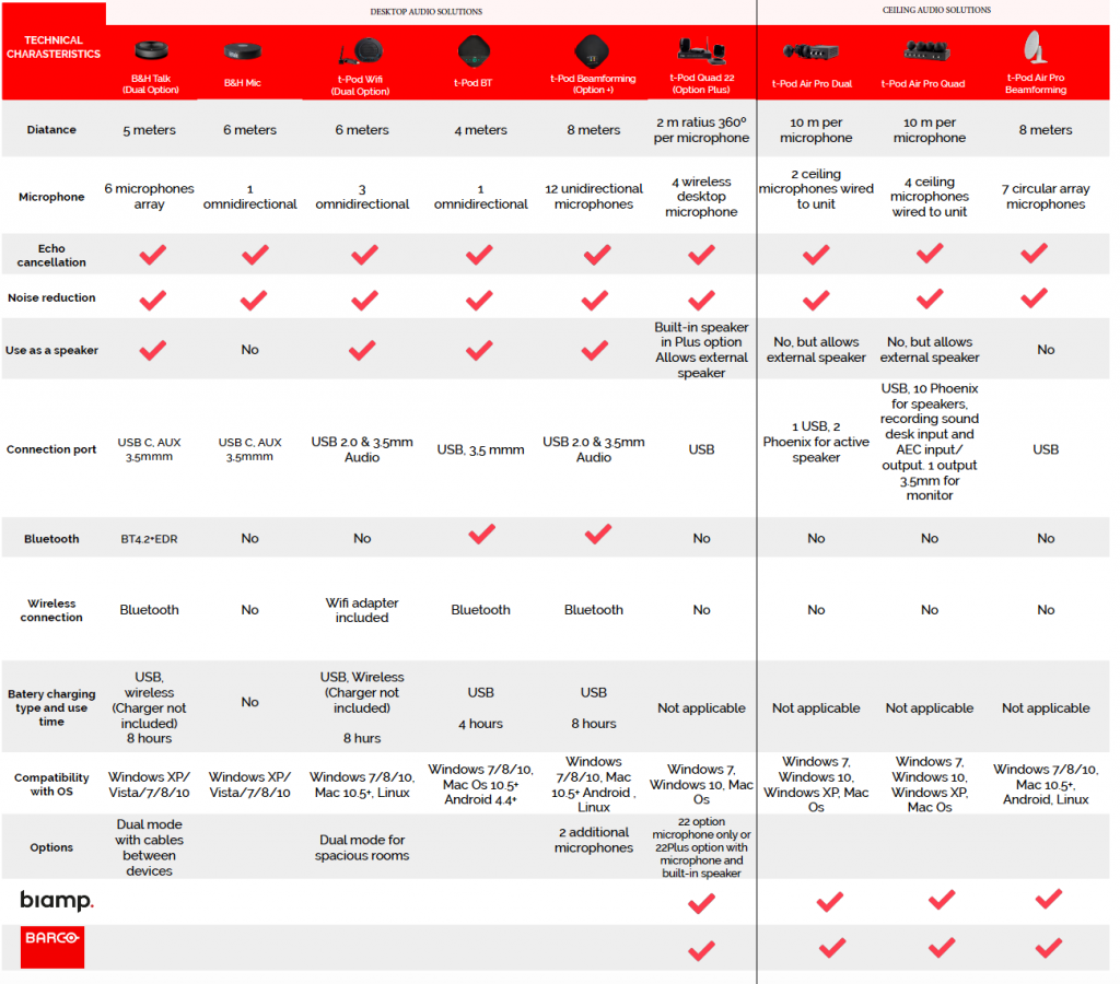 Ciesz się wyraźnym, czystym dźwiękiem podczas konferencji dzięki mikrofonom sufitowym Laiatech. Stwórz środowisko wolne od urządzeń na stole i zapomnij o używaniu kabli podczas każdego spotkania. Nasze urządzenia oferują 360-stopniowe pokrycie. Różne urządzenia do różnych typów pomieszczeń: od małych i średnich do dużych przestrzeni, takich jak audytoria.