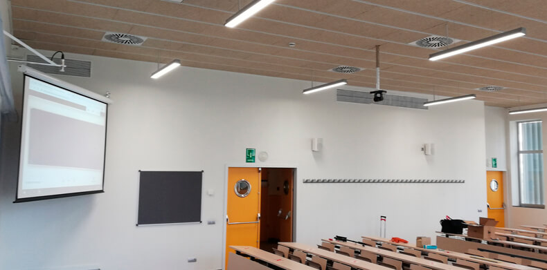 - Install and connect Laia t-Pod Air Pro ceiling microphones on the ceiling to cover classroom audio.